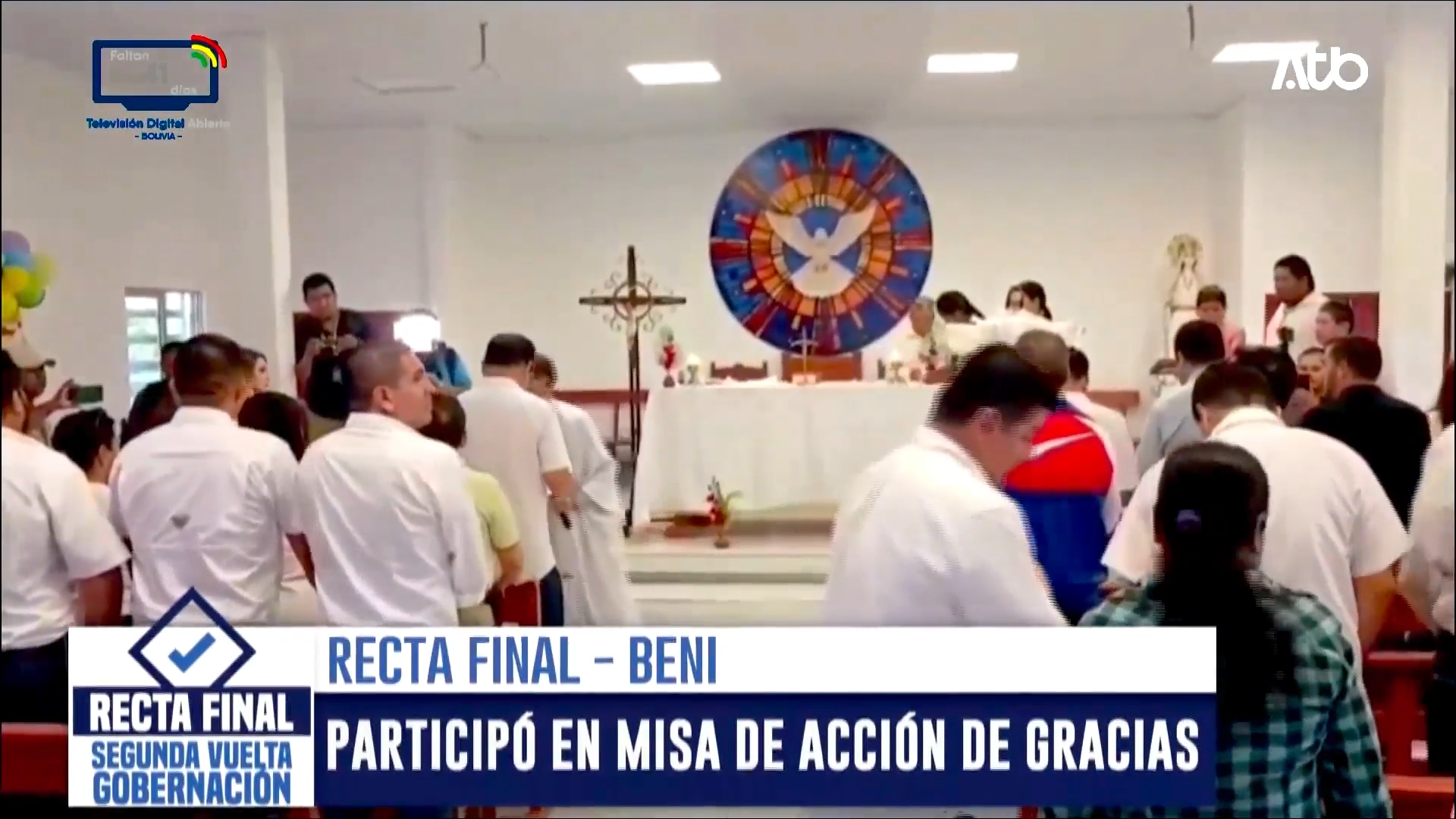 Beni, 19 de abril 2026 (En Conexión).- El candidato de Alianza Piatra por la Gobernación en Beni, Jesús Egüez, partició de una misa previo a la jornada electoral que se desarrolla este 19 de abril. Asimismo, señaló que es un día para fortalecer la democracia y destacó la necesidad de participar de este balotaje.