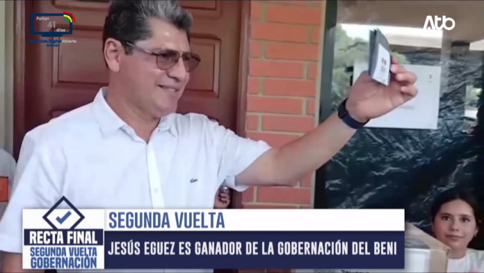 Beni, 19 de abril 2026 (En Conexión).- En el departamento del Beni, el candidato a la Gobernación Jesús Egüez, señalado como ganador virtual según el Sistema de Resultados Preliminares (Sirepre), celebró los resultados preliminares y agradeció a la población por el apoyo recibido en la jornada electoral.