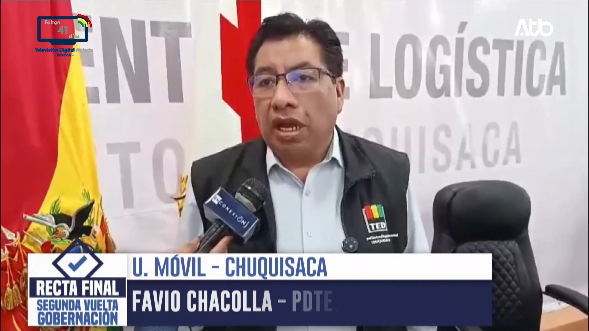 Chuquisaca, 19 de abril 2026 (En Conexión).- El presidente del Tribunal Electoral Departamental (TED) de Chuquisaca, Favio Chacollo, explicó que se prevé el retorno masivo de las maletas electorales a la institución alrededor de las 18:00, momento en el que se dará inicio al cómputo departamental oficial.