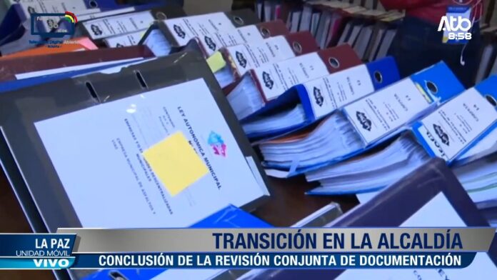 La Paz, 24 de abril 2026 (En Conexión).-El alcalde saliente de La Paz, Iván Arias, entregó este viernes carpetas con documentación oficial al alcalde electo César Dockweiler, como parte del proceso de transición. Tras la revisión conjunta de la información, se logró encaminar la entrega parcial de los documentos de gestión, avanzando en el traspaso de responsabilidades en la administración municipal.
