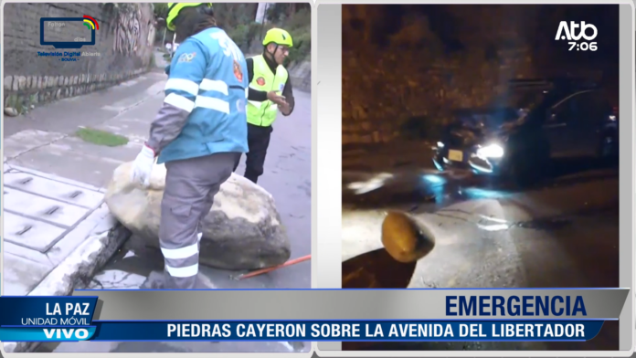 La Paz, 23 de abr 2026 (En Conexión).- El desprendimiento de tierras por las lluvias provocó la caída de piedras sobre la avenida del Libertador, en la ciudad de La Paz.