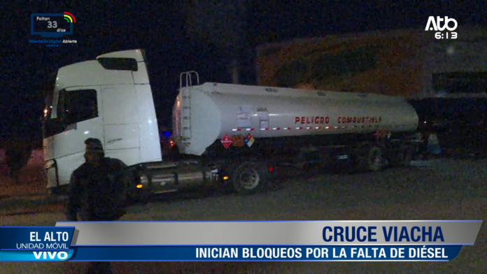 Cisternas bloquean cruce Viacha en El Alto por falta de diésel