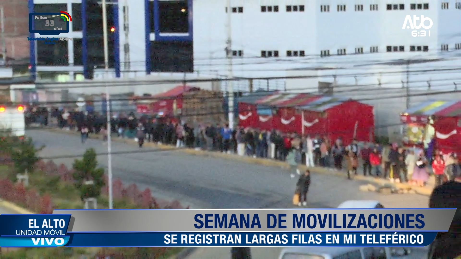 El Alto, 27 de abr 2026 (En Conexión).- Tras el bloqueo de camiones cisterna, se registran largas filas en el teleférico ante la falta de transporte público.