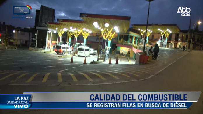 La Paz, 23 de abr 2026 (En Conexión).- En la estación de servicio El Volcán, en la ciudad de La Paz, se registran largas filas de vehículos en busca de diésel.