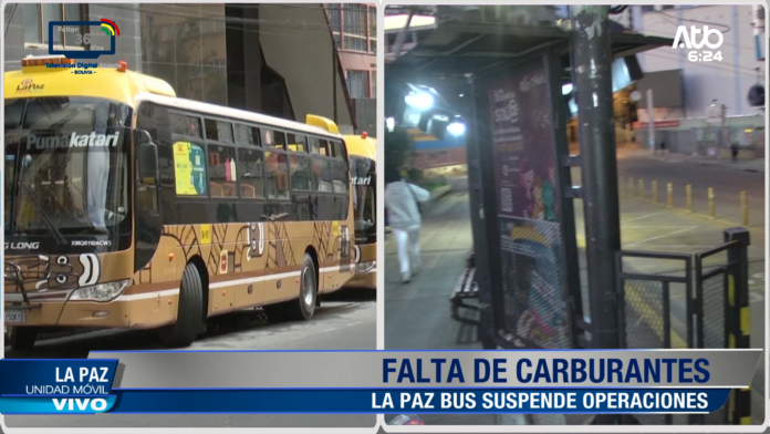 La Paz, 24 de abr 2026 (En Conexión).- El servicio La Paz BUS suspendió sus operaciones debido al desabastecimiento de diésel que afecta al sector transporte.