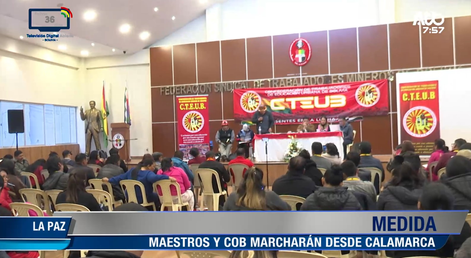 La Paz, 24 de abril 2026 (En Conexión).- Los maestros y la Central Obrera Boliviana (COB) anunciaron el inicio de una marcha desde la localidad de Calamarca en protesta por la falta de atención a las demandas del sector trabajador. La movilización tiene previsto llegar a la ciudad de La Paz el 1 de mayo, en el marco de sus reclamos por mejoras laborales y sociales.