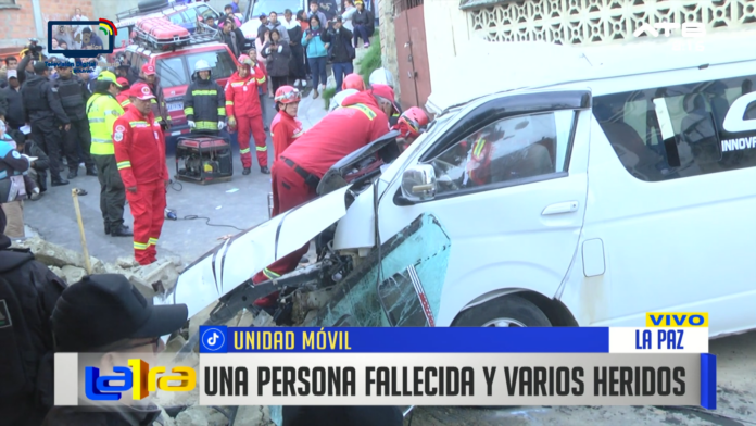 La Paz, 14 de abr 2026 (En Conexión).- Un accidente de tránsito se registró en la avenida Jaimes Freyre, en la zona de Sopocachi, donde un minibús blanco impactó contra una vivienda, quedando gravemente destrozado. El hecho dejó como saldo una persona fallecida y al menos cuatro heridos.
