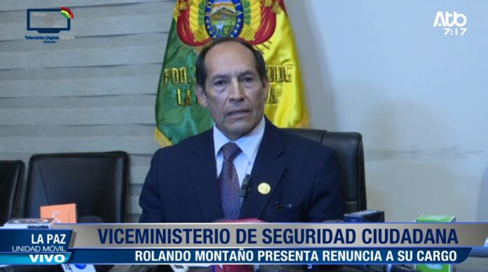 La Paz, 24 de abril 2026 (En Conexión).- La noche de este viernes, Rolando Montaño anunció su renuncia al cargo de viceministro de Seguridad Ciudadana, dependencia que forma parte del Ministerio de Gobierno. Hasta el momento no se han detallado los motivos de su decisión ni quién asumirá interinamente el despacho.