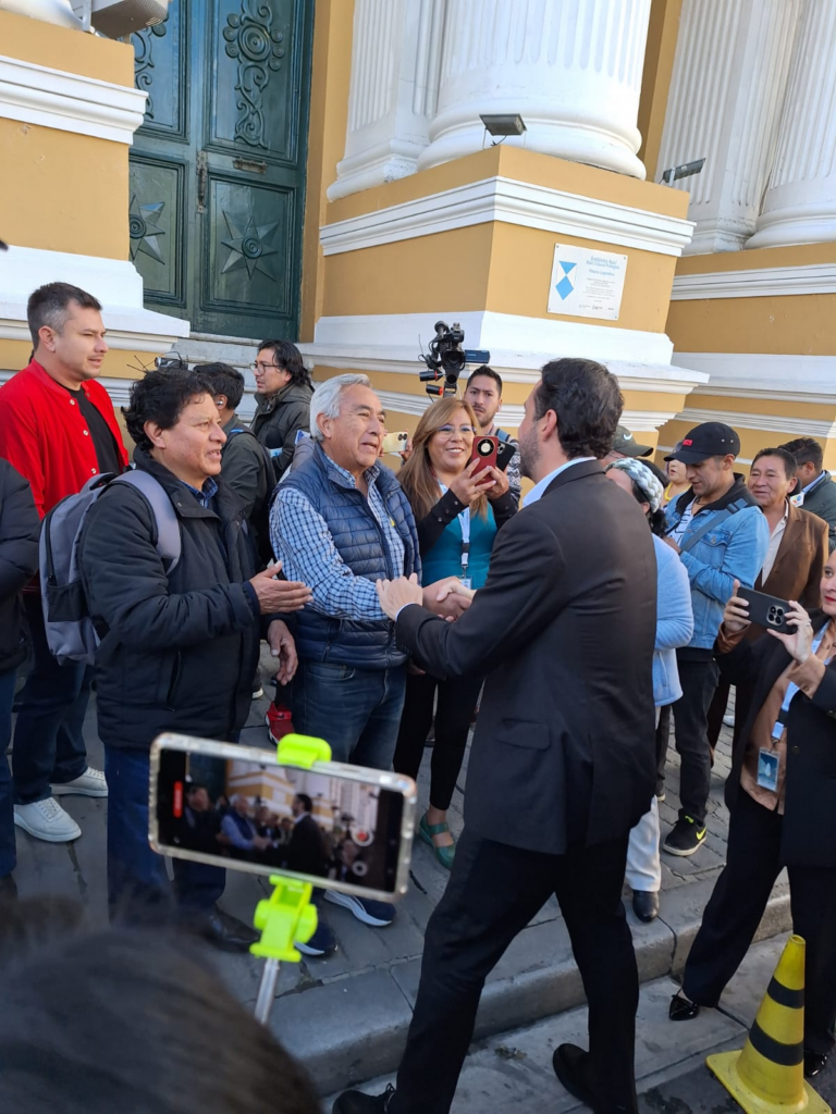 La Paz, 24 abr 2026 (En Conexión).- El gobernador electo de Santa Cruz, Juan Pablo Velasco, arribó a la ciudad de La Paz con un diagnóstico crítico: el departamento se encuentra técnicamente en quiebra. Velasco adelantó que durante su reunión con el presidente Rodrigo Paz y otros gobernadores propondrá la aplicación del programa «50/50» para la reactivación económica de la región.