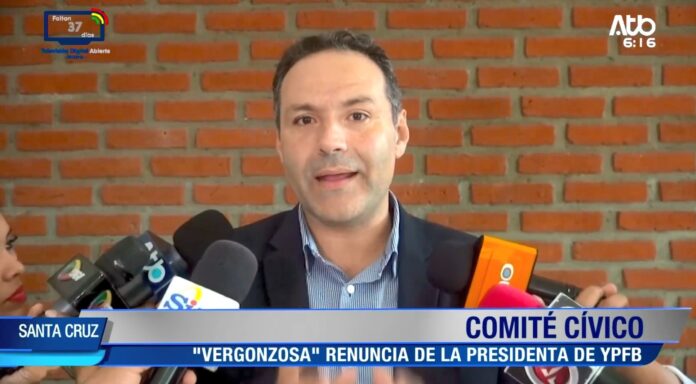 Santa Cruz, 23 de abr 2026 (En Conexión).- El vicepresidente del Comité Cívico pro Santa Cruz, Agustín Zambrana, calificó de “vergonzosa” la renuncia de la presidenta de YPFB.