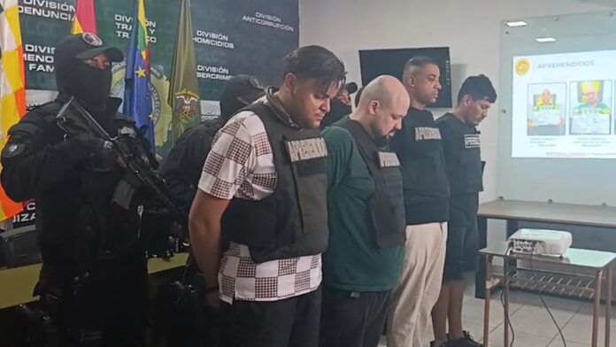 Santa Cruz, 24 de abril 2026 (En Conexión).- La FELCC presentó a los presuntos autores del asesinato de José Ángel Castañeta, alias “Cara de Bebé”, ocurrido en la Radial 26 de Santa Cruz de la Sierra. Los sospechosos fueron identificados gracias al análisis de cámaras de seguridad y ya esperan su audiencia cautelar.