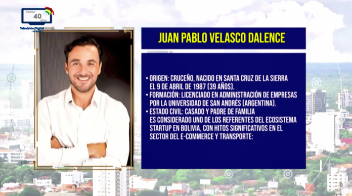 Santa Cruz, 20 de abr 2026 (En Conexión).- Juan Pablo Velasco, de la alianza LIBRE, fue electo como gobernador, junto a Paola Aguirre como vicegobernadora, tras imponerse en la contienda electoral.