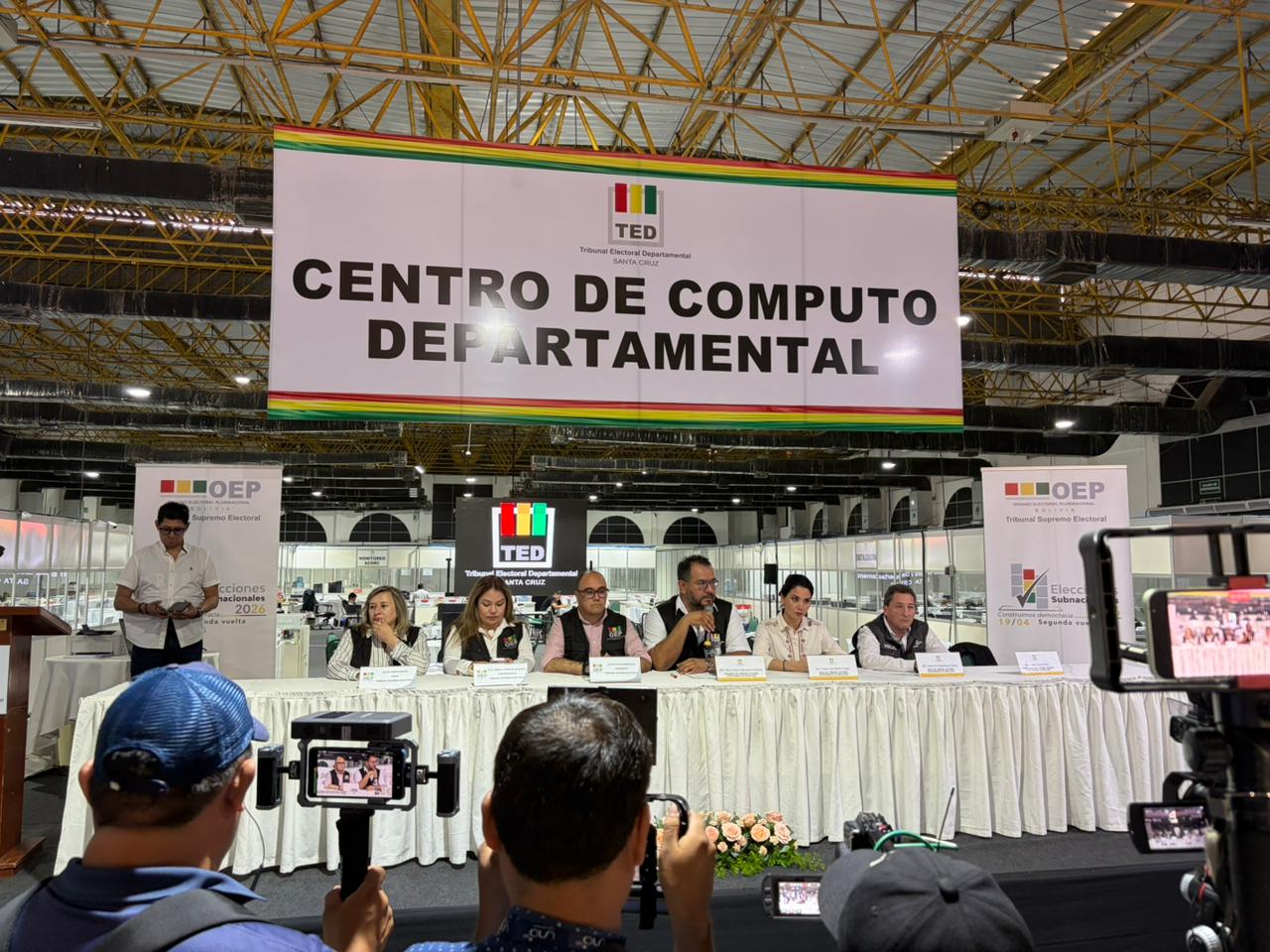 Santa Cruz, 19 de abril 2026 (En Conexión).- El Tribunal Supremo Electoral (TSE) y el Tribunal Electoral Departamental (TED) de Santa Cruz brindaron una conferencia de prensa para informar sobre el inicio de la jornada de votación de la segunda vuelta electoral, en la que se destacó el normal desarrollo del proceso en los distintos departamentos.