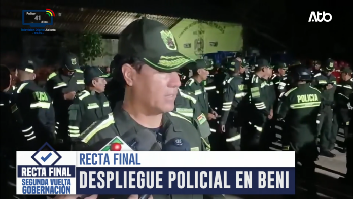 Beni, 19 de abril 2026 (En Conexión).- La Policía Boliviana en el departamento del Beni implementó un plan de seguridad para resguardar el desarrollo de las elecciones subnacionales en el marco del balotaje, con la distribución de efectivos en distintos recintos de votación, según el reporte policial.